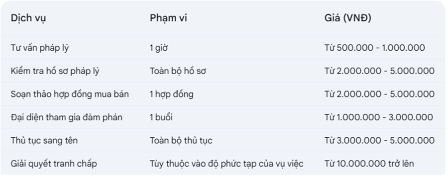 Bảng Giá Thuê Luật Sư Mua Bán Nhà Đất