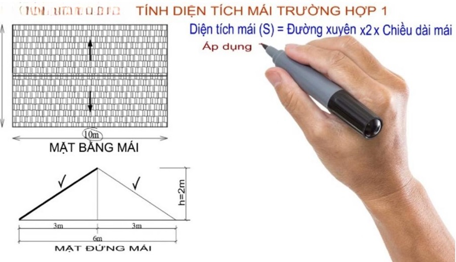 - Hình tam giác: Diện tích = (Chiều dài đáy × Chiều cao) / 2. Đối với tam giác vuông, chiều cao chính là một trong hai cạnh góc vuông.